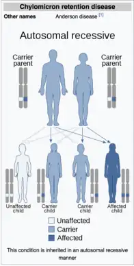 {{cite web}}: CS1 maint: archived copy as title (link) - 1 2 Reference, Genetics Home. "Chylomicron retention disease". Genetics Home Reference. Archived from the original on 2020-06-16. Retrieved 2020-05-04.