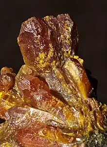 - cinnabar, realgar, arsenolite, laminar malachite, and magnetite[31]