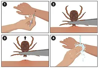 - 1 2 "Tick removal | CDC". Centers for Disease Control and Prevention. 13 May 2022. Archived from the original on 16 January 2017. Retrieved 27 August 2023.