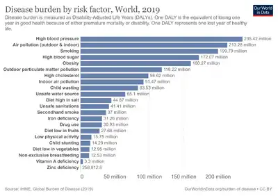 Complications of hypertension are clinical outcomes that result from persistent elevation of blood pressure.[1] Hypertension is a risk factor for all clinical manifestations of atherosclerosis since it is a risk factor for atherosclerosis itself.[2][3][4][5][6][7] It is an independent predisposing factor for heart failure,[8][9] coronary artery disease,[10][11] stroke,[1] kidney disease,[12][13][14] and peripheral arterial disease.[15][16] It is the most important risk factor for cardiovascular morbidity and mortality, in industrialized countries.[17]