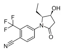 - ↑ Aikawa K, Asano M, Ono K, Habuka N, Yano J, Wilson K, et al. (July 2017). "Synthesis and biological evaluation of novel selective androgen receptor modulators (SARMs) Part III: Discovery of 4-(5-oxopyrrolidine-1-yl)benzonitrile derivative 2f as a clinical candidate". Bioorganic & Medicinal Chemistry. 25 (13): 3330–3349. doi:10.1016/j.bmc.2017.04.018. PMID 28454849.