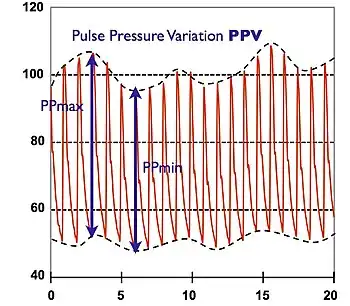 - ↑ Maguire, S., Rinehart, J., Vakharia, S., & Cannesson, M. (2011). Technical communication: respiratory variation in pulse pressure and plethysmographic waveforms: intraoperative applicability in a North American academic center. Anesthesia & Analgesia, 112(1), 94–6.