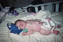 Life-saving heart surgery is always required.[2][3] If the diagnosis is made in a standard hospital or other clinical facility, the baby will be transferred to a children's hospital, if such facilities are available, for specialized paediatric treatment and equipment.