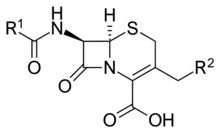 - ↑ Perez-Inestrosa, E; Suau, R; Montañez, MI; Rodriguez, R; Mayorga, C; Torres, MJ; Blanca, M (August 2005). "Cephalosporin chemical reactivity and its immunological implications". Current Opinion in Allergy and Clinical Immunology. 5 (4): 323–30. doi:10.1097/01.all.0000173788.73401.69. PMID 15985814. S2CID 13346333.