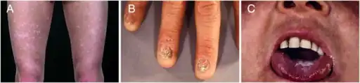 - ↑ James, William; Berger, Timothy; Elston, Dirk (2005). Andrews' Diseases of the Skin: Clinical Dermatology. (10th ed.). Saunders. ISBN 0-7216-2921-0.