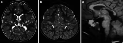 - ↑ Himmelmann, K.; Horber, V.; De La Cruz, J.; Horridge, K.; Mejaski-Bosnjak, V.; Hollody, K.; Krägeloh-Mann, I. (January 2017). "MRI classification system (MRICS) for children with cerebral palsy: development, reliability, and recommendations". Developmental Medicine & Child Neurology. 59 (1): 57–64. doi:10.1111/dmcn.13166. PMID 27325153.