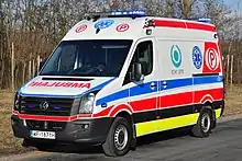 The vehicles of the Polish EMS system come in a wide variety of shapes and sizes. As a member of the European Union, Poland has decided to ratify most aspects of the requirements of European standard CEN 1789 for ambulances, as reflected in the Polish EN 1789 (Classes A-C) Standard.[10] The visual identity requirements of the European standard for ambulances are not yet being followed. The three major types of vehicle are:
