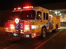 Auxiliary lighting is light used for illumination, to supplement factory-installed headlights or to illuminate areas to the side of or behind the vehicle. It is typically white or near-white light. Some emergency scenes require additional lighting if the emergency workers are to be able to effectively deal with the emergency. Also, building numbers are often obscured by darkness, making it difficult for emergency workers to find the scene of an emergency. For these reasons, emergency vehicles are often equipped with auxiliary lighting, such as: