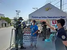 - ↑ Cabico, Gaea Katreena (April 15, 2020). "Cops to impose stricter screening at checkpoints as more vehicles ply roads". The Philippine Star. Retrieved April 22, 2020.