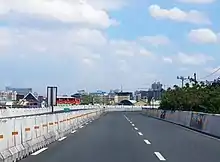 Under GCQ, low-risk industries can let their employees work in phases as well as priority and vital projects in construction may continue with the guidance of the Department of Public Works and Highways.[41] The populace can go outside their houses only to buy basic necessities as LGUs enforce night curfew to persons who are not workers.[42] In addition, Mall stores or shopping centers under GCQ areas that are categorized as "non-leisure" can open to a limited degree and operation of public transportation are allow but with less volume.[42] Universities and colleges in areas under GCQ can end the academic year and provide credentials to students.[42] Similarly, airports and seaports can also operate to make the delivery of goods open.[41]