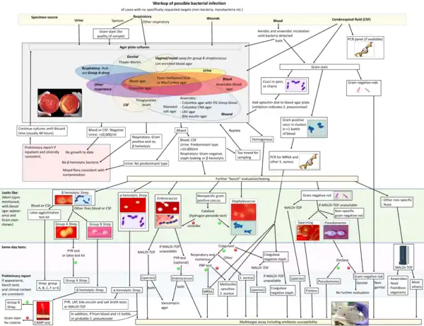 Important clinical infections caused by Enterococcus include urinary tract infections (see Enterococcus faecalis), bacteremia, bacterial endocarditis, diverticulitis, meningitis, and spontaneous bacterial peritonitis.[4][8][9] Sensitive strains of these bacteria can be treated with ampicillin, penicillin and vancomycin.[10] Urinary tract infections can be treated specifically with nitrofurantoin, even in cases of vancomycin resistance.[11]