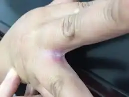 Erosio interdigitalis blastomycetica (EIB) is a skin condition caused by a Candida albicans infection, characterized by an oval-shaped area of macerated white skin on the web between and extending onto the sides of the fingers.[1]: 310
