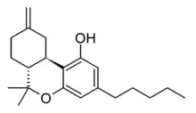 - ↑ Banijamali AR, Makriyannis A (1998). "Novel synthesis of (−)-trans-Δ9,11-tetrahydrocannabinol". Journal of Heterocyclic Chemistry. 25 (3): 823–825. doi:10.1002/jhet.5570250324.