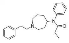 - ↑ Finney ZG, Riley TN (August 1980). "4-Anilidopiperidine analgesics. 3. 1-Substituted 4-(propananilido)perhydroazepines as ring-expanded analogues". Journal of Medicinal Chemistry. 23 (8): 895–9. doi:10.1021/jm00182a016. PMID 7190616.