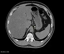 - ↑ Ulusan S, Koc Z, Kayaselcuk F (2008). "Gastrointestinal stromal tumours: CT findings". Br J Radiol. 81 (968): 618–623. doi:10.1259/bjr/90134736. PMID 18628330.