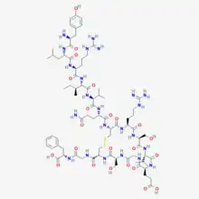 Human Growth Hormone Fragment 176–191 (hGH frag 176–191) is a peptide fragment of human growth hormone. It has erroneously been presented as a lipolytic peptide fragment based on extrapolations of clinical data pertaining to AOD9604, a modified form of hGH frag 176–191. In contrast to AOD9604, hGH frag 176–191 has not been studied in humans.[1]