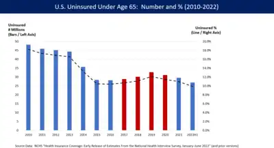- ↑ "Health Insurance Coverage: Early Release of Estimates from the NHIS, January - June 2022". CDC.gov. January 27, 2023.