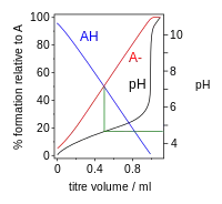 - ↑ For details and worked examples see, for instance, Skoog, Douglas A.; West, Donald M.; Holler, F. James; Crouch, Stanley R. (2004). Fundamentals of Analytical Chemistry (8th ed.). Belmont, Ca (USA): Brooks/Cole. pp. 251–263. ISBN 0-03035523-0.