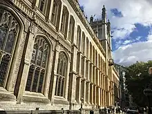 The estate of King's College London, particularly the Strand Campus, includes a number of historic buildings, many listed at various grades. These include the main King's Building, constructed in 1828 to complete the riverside frontage of Somerset House, and the current east wing of Somerset House (both Grade I listed),[118] the Maughan Library (Grade II* listed),[119] 152 and 153 Strand (Grade II listed),[120] and Bush House (Grade II listed).[121] The Strand Campus mostly falls within the Strand Conservation Area,[122] with the Strand Building and Macadam Building having been granted certificates of immunity.[83][123] The Maughan Library falls within the Chancery Lane Conservation Area.[124]