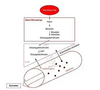- ↑ Roy-Chowdhury, Jayanta; Roy-Chowdhury, Namita (2012-01-01), Boyer, Thomas D.; Manns, Michael P.; Sanyal, Arun J. (eds.), "Chapter 62 - Bilirubin Metabolism and Its Disorders", Zakim and Boyer's Hepatology (Sixth Edition), Saint Louis: W.B. Saunders, pp. 1079–1109, doi:10.1016/b978-1-4377-0881-3.00062-0, ISBN 978-1-4377-0881-3, retrieved 2022-03-29