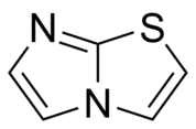 Imidazothiazoles are a class of chemical compounds containing a bicyclic heterocycle (a double ring system) consisting of an imidazole ring fused to a thiazole ring.[1] The structure contains three non-carbon or heteroatoms: two nitrogen atoms and one sulfur atom. Imidazothiazole derivatives show a broad spectrum of in vitro, i.e. "in the petri dish", activity such as anticancer,[2][3][4] antipsychotic,[5] antimicrobial,[6] antifungal,[7] and anthelmintic[8] (against cancer, psychosis, microorganisms, fungi and worms, respectively).