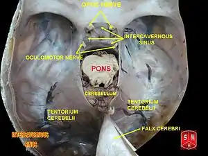 The intercavernous sinuses are two in number, an anterior and a posterior, and connect the two cavernous sinuses[1] across the middle line.