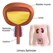 - ↑ Jung J, Ahn HK, and Huh Y (September 2012). "Clinical and Functional Anatomy of the Urethral Sphincter". International Neurourology Journal. 16 (3): 102–106. doi:10.5213/inj.2012.16.3.102. PMC 3469827. PMID 23094214.