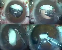 The technique can be used for intraoperative nucleus removal during cataract surgery (phacoemulsification), removal of lens dropped on the retina, Sommering ring removal, intraocular foreign body removal, and IOL explantation.[4][5][6][1][7][8]