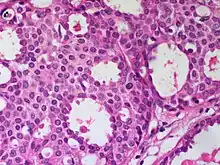 - ↑ Liu XY, Jiang YZ, Liu YR, Zuo WJ, Shao ZM (August 2015). "Clinicopathological Characteristics and Survival Outcomes of Invasive Cribriform Carcinoma of Breast: A SEER Population-Based Study". Medicine. 94 (31): e1309. doi:10.1097/MD.0000000000001309. PMC 4616584. PMID 26252312.