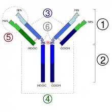 {{cite journal}}: CS1 maint: multiple names: authors list (link) - ↑ Perkins, S. J., Furtado, P. B. (2004). "Solution structure determination of monomeric human IgA2 by X-ray and neutron scattering, analytical ultracentrifugation and constrained modelling: a comparison with monomeric human IgA1". J Mol Biol. 338 (5): 921–41. doi:10.1016/j.jmb.2004.03.007. PMID 15111057.