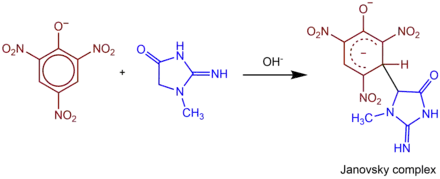 Jaffe Reaction. Picric acid reacts with creatinine with formation of Janovsky complex[3]
