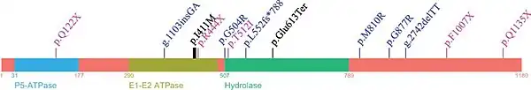- 1 2 3 4 5 6 Podhajska A, Musso A, Trancikova A, Stafa K, Moser R, Sonnay S, et al. (2012-06-29). "Common pathogenic effects of missense mutations in the P-type ATPase ATP13A2 (PARK9) associated with early-onset parkinsonism". PLOS ONE. 7 (6): e39942. Bibcode:2012PLoSO...739942P. doi:10.1371/journal.pone.0039942. PMC 3386943. PMID 22768177.