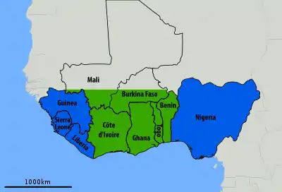 The high risk areas cannot be well defined by any known biogeographical or environmental breaks except for the multimammate rat, particularly Guinea (Kindia, Faranah and Nzerekore regions), Liberia (mostly in Lofa, Bong, and Nimba counties), Nigeria (in about 10 of 36 states) and Sierra Leone (typically from Kenema and Kailahun districts). It is less common in the Central African Republic, Mali, Senegal and other nearby countries, and less common yet in Ghana and the Democratic Republic of the Congo. Benin had its first confirmed cases in 2014, and Togo had its first confirmed cases in 2016.[22]