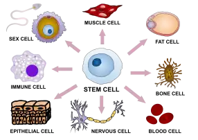 Bone marrow is the soft spongy area in some larger bones of the body that produces many cells which make up red blood cells, white blood cells and platelets.[17] These cells are developed from a type of cell found in bone marrow, termed hematopoietic stem cells.[17] The body is able to direct these stem cells to develop in the blood at any given moment and this is a rapid process.[17] Most of the stem cells remain in the marrow until they are mature which then they are released for specific functions in the body such as carrying oxygen, providing infection protection, and helping blood clotting.[17] Stem cells found in circulating blood are able to be extracted for stem cell therapy use and research.[17]