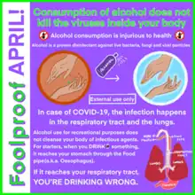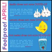 - ↑ "Health authorities warn of false COVID-19 prevention tips online". AFP Fact Check. April 2, 2020. Archived from the original on April 8, 2020. Retrieved April 3, 2020.