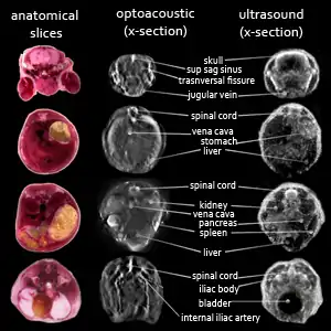 - ↑ L.V. Wang, S. Hu, "Photoacoustic Tomography: In Vivo Imaging from Organelles to Organs", Science 335 (2012) 1458-1462.