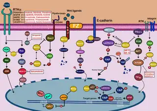 - ↑ Striedinger K, VandenBerg SR, Baia GS, McDermott MW, Gutmann DH, Lal A (November 2008). "The neurofibromatosis 2 tumor suppressor gene product, merlin, regulates human meningioma cell growth by signaling through YAP". Neoplasia. 10 (11): 1204–12. doi:10.1593/neo.08642. PMC 2570596. PMID 18953429.