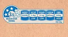 The Health Star Rating System (HSR) is an Australian and New Zealand Government initiative that assigns health ratings to packaged foods and beverages. Ratings scale by half star increments between half a star up to five stars, with the higher the rating, the healthier the product. A calculator uses nutritional information such as total sugar, sodium, energy and other variants to obtain a rating for the product. Points are added for "healthy" nutrients such as fibres, proteins and vegetable matter whilst points are deducted for "unhealthy" nutrients that have been scientifically linked to chronic health disease, such as fats and sugars.