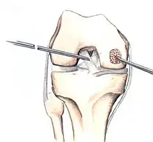 - ↑ Mandelbaum BR, Browne JE, Fu F, et al. (1998). "Articular cartilage lesions of the knee". The American Journal of Sports Medicine. 26 (6): 853–61. doi:10.1177/03635465980260062201. PMID 9850792. S2CID 21318642.