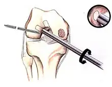 - ↑ Bradley J, Dandy DJ (August 1989). "Results of drilling osteochondritis dissecans before skeletal maturity". The Journal of Bone and Joint Surgery. British Volume. 71 (4): 642–4. doi:10.1302/0301-620X.71B4.2768313. PMID 2768313.