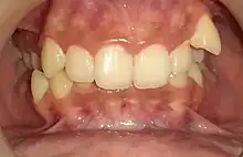Overbite is the extent of vertical (superior-inferior) overlap of the maxillary central incisors over the mandibular central incisors,[1] measured relative to the incisal ridges.[2]