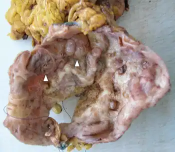 - ↑ Babiker, Hani M.; Hoilat, Gilles J.; Mukkamalla, Shiva Kumar R. (2022). "Mucinous Cystic Pancreatic Neoplasms". StatPearls. StatPearls Publishing. Archived from the original on 1 February 2022. Retrieved 28 September 2022.