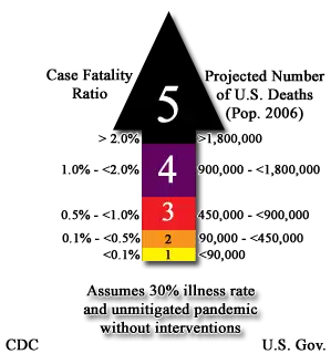 - 1 2 3 4 5 6 Roos, Robert; Lisa Schnirring (February 1, 2007). "HHS ties pandemic mitigation advice to severity". CIDRAP News. Archived from the original on February 5, 2012. Retrieved August 11, 2007.