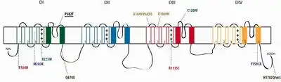 - ↑ Lerche H, Mitrovic N, Dubowitz V, Lehmann-Horn F (1996). "Paramyotonia congenita: the R1448P Na+ channel mutation in adult human skeletal muscle". Ann Neurol. 39 (5): 599–608. doi:10.1002/ana.410390509. PMID 8619545. S2CID 8092621.