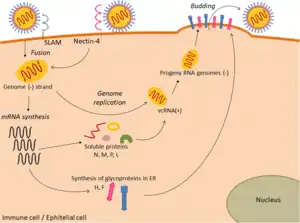 - ↑ Schneider-Schaulies, Sibylle; Meulen, Volker ter (1 January 1999). "MEASLES VIRUS (PARAMYXOVIRIDAE)". Encyclopedia of Virology (Second Edition). Elsevier. pp. 952–960. ISBN 978-0-12-227030-7. Archived from the original on 20 October 2021. Retrieved 30 March 2023.