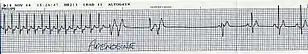 | Lead II electrocardiogram strip showing PSVT with a heart rate of about 180. | |