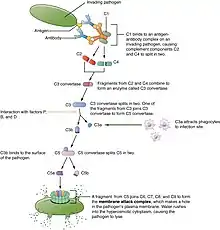 - ↑ Charles A Janeway, Jr; Travers, Paul; Walport, Mark; Shlomchik, Mark J. (2001). "The complement system and innate immunity". Immunobiology: The Immune System in Health and Disease. 5th Edition.