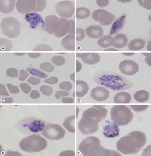 - ↑ Sutherland CJ, Tanomsing N, Nolder D, Oguike M, Jennison C, Pukrittayakamee S, Dolecek C, Hien TT, do Rosário VE, Arez AP, Pinto J, Michon P, Escalante AA, Nosten F, Burke M, Lee R, Blaze M, Otto TD, Barnwell JW, Pain A, Williams J, White NJ, Day NP, Snounou G, Lockhart PJ, Chiodini PL, Imwong M, Polley SD (2010). "Two nonrecombining sympatric forms of the human malaria parasite Plasmodium ovale occur globally". J Infect Dis. 201 (10): 1544–50. doi:10.1086/652240. PMID 20380562.