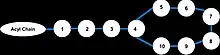 Polymyxins are a group of cyclic non-ribosomal polypeptide (NRPs) which are biosynthesized by bacteria belonging to the genus Paenibacillus. Polymyxins consist of 10 amino acid residues, six of which are L-α,γ-diaminobutyric acid (L-DAB). The DAB residues cause polymyxins to have multiple positively charged groups at physiological pH. Seven amino acid residues form the main cyclic component, while the other three extend from one of the cyclic residues as a linear chain terminating in either 6-methyloctanoic acid or 6-methylheptanoic acid at the N-terminus. During cyclization, residue 10 is bound to the bridging residue 4.[9] The amino acid residues and DAB monomers are generally in the L (levo) configuration, however certain strains such as P. polymyxa PKB1 have been observed to incorporate DAB with the D (dextro) configuration at position 3 producing variations of polymyxin B.[10]