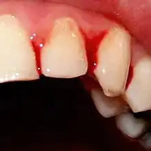 - ↑ Jafarzadeh, H; Sanatkhani, M; Mohtasham, N (2006). "Oral pyogenic granuloma: A review". Journal of Oral Science. 48 (4): 167–75. doi:10.2334/josnusd.48.167. PMID 17220613.